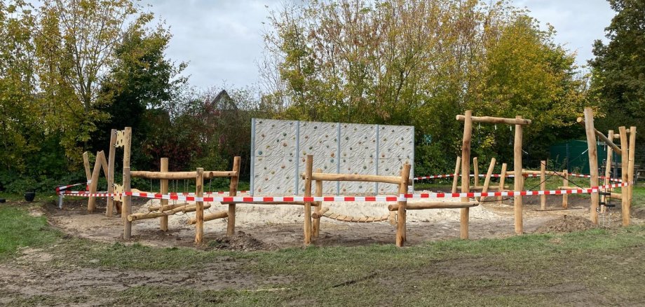 Der Beton muss noch ein paar Tage aushärten und Sand und Hackschnitzel müssen verteilt werden, damit sich niemand beim Klettern wehtun kann, aber nach den Herbstferien kann die Kletterei losgehen.