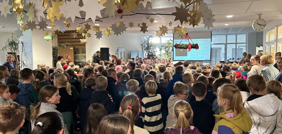 Dem gemeinsamen Singen kommt auch an unserer Schule in der Adventszeit eine besondere Bedeutung zu. Jeden Freitag nach der großen Pause treffen sich alle Schülerinnen und Schüler unserer Schule um gemeinsam alte und neue Weihnachtslieder zu singen. Während "Advent" noch besinnlich und mit Bewegungen untermalt gesungen wird, ist spätestens bei der "Weihnachtsbäckerei" jeder wach und textsicher mit dabei.