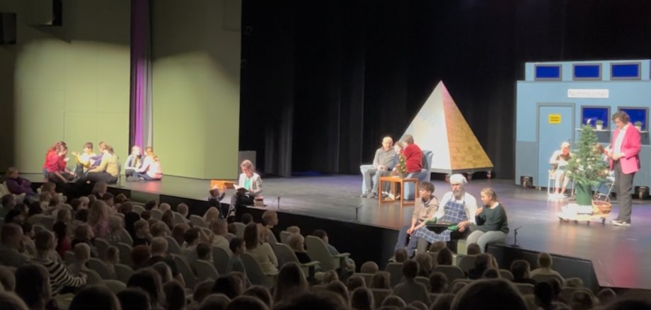 Wer am vergangenen Dienstag um 10:00 Uhr an der Lambertischule vorbeifuhr, sah keine Kinder und auch keine Lehrerinnen und Lehrer. Die waren zu dem Zeitpunkt nämlich schon nicht mehr da, sondern auf dem Weg nach Lingen in das Theater an der Wilhelmshöhe. Von der Klasse 1a bis zur Klasse 4d fuhr die ganze Schule los, um sich das Theaterstück "Das fliegende Klassenzimmer" anzusehen. Es war ein sehr schöner Vormittag und wir sind schon gespannt, welches Stück im nächsten Jahr gespielt wird.